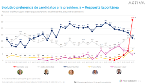 Según el sondeo, al cual tuvo acceso 24horas.cl, ante la pregunta ‘Pensando en el futuro, ¿quién preferirías que sea el próximo presidente de Chile, excluyendo a Gabriel Boric? ‘, la exministra de Estado llegó al 31,4%, teniendo una importante aumento respecto a la última medición.