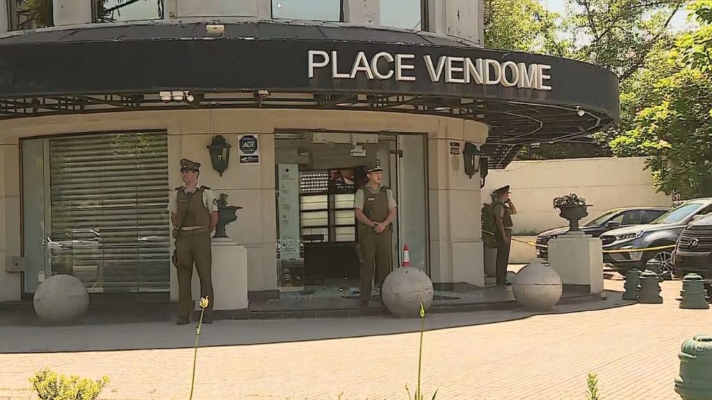 De acuerdo a los antecedentes del caso, el delito afectó a una sucursal Place Vendome ubicada entre la Avenida Manquehue con calle Las Hualtatas, donde cerca de cinco sujetos usaron combos y fierros para romper las mamparas de la misma.